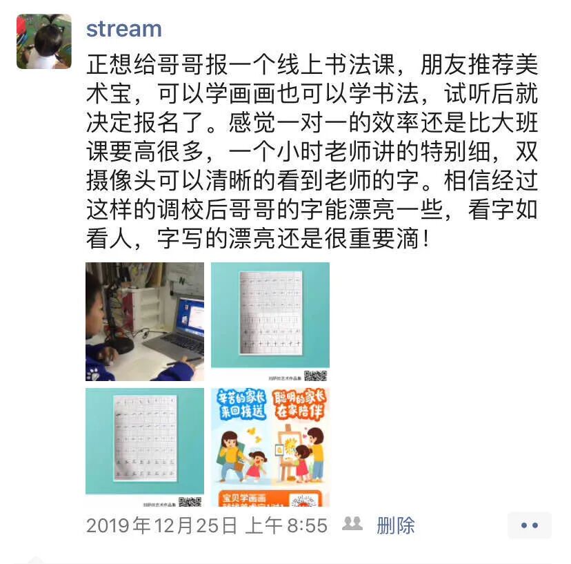 美术宝?我们一直在上的机构呀!哥哥学书法,妹妹学画画,已经上了快一年了!我自己就在朋友圈里推荐过好几次~