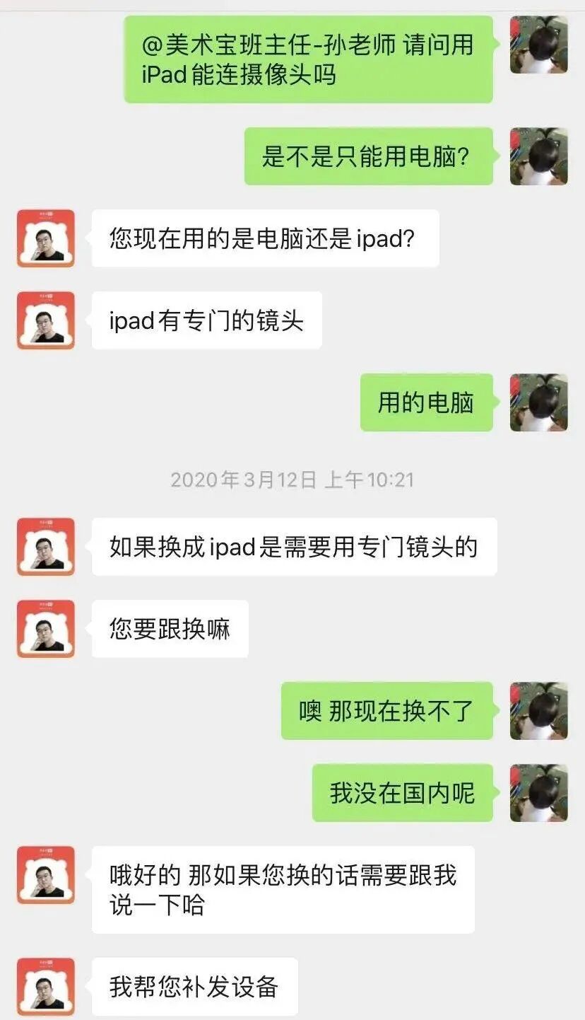 2.如果是通过美术宝学书法,那么建议选择适配于平板的摄像头,因为平板没有键盘,所以距离近一些,可以让孩子更清晰的看到老师写的字。我们一开始选的是电脑版的,后来感觉还是平板更好,但是我们已经到芬兰了,抱着试试看的想法,我提出想要换适配平板的摄像头,没想到客服二话不说就答应帮我免费邮寄,服务真是没得说!