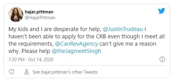 这位妈妈的情况也不是个例。CRA的官方推特下面,有各种留言,询问自己申请为什么失败,明明都符合要求。