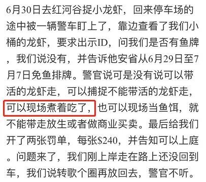 警官说没错,但不能带活的小龙虾走,