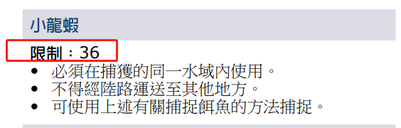 部份水域不容许捕捉及使用鱼饵