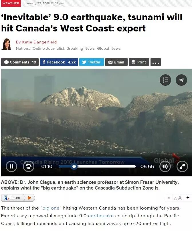 加拿大头顶突发7.5级强震!2020-10-19 |作者: | 来源:北美报告多伦多温哥华Loading...分享: 突发新闻!刚刚,美东时间下午5点左右,即本文截稿的数十分钟前,美国地质调查局称,阿拉斯加海岸附近再次暴发7.5级强震! 这场地震不仅惊醒了当地美国兄弟,也让隔壁的加拿大朋友坐立难安。目前,南阿拉斯加和阿拉斯加半岛皆已发布了海啸预警。 美国地质调查局警告称:“如果你住在沿海地区,请立即向内陆地势较高的地方迁移。” 初步资料显示,这次地震是一次走滑型地震,震源深度估计为40公里。距离震中最近的社区是阿拉斯加州的沙普特,一个居民不足1,000人的小镇,位于西北方向约92公里处。阿拉斯加地震中心说,南海岸的许多社区都有震感,包括沙普点、乔普林克、尤纳拉斯加和基奈半岛。 据报道,11分钟后又发生了里氏5.2级的余震,震中大致位于同一地区。 熟知地理的朋友一定知道,加拿大其实是被“两个美国”夹在中间的,地震多发地带阿拉斯加刚好就在加拿大bc省的头顶,因此每一场地震海啸爆发,加拿大居民都显得格外紧张。 美东时间下午5点15分,即地震刚爆发不久,美加地质局官员就表示,当前正在评估BC省的居民是否有危险。 阿拉斯加最近一次爆发强震就是在两年前:2018年初,阿拉斯加出现7.9级超强地震,事件一度引发各界对于“the big one(超级强震)”的担忧。 难道那场传言分分钟震碎加拿大西海岸的9.0级大地震,真的要来了吗? 官方曾给出简短答案:是的。 毕竟自今年2020年以来,全球气候就不断表现出异常征兆: 19年底至20年初,BC省温哥华岛海岸附近就暴发9次不同程度地震,大温白石海滩更曾惊现大量银色小鱼,现场情形触目惊心。 白石海滩上惊现大量的银色小鱼 种种现象似乎都提醒人们注意气候变化,警惕“the big one(超级强震)”的到来。 历史记载很久很久以前……大约是1700年1月26日的晚上9:00左右,北美大陆西海岸发生过9.0级强震。彼时,北加州、华盛顿州、加拿大卑诗省皆处于该地震范围内。据悉,这场地震曾引发海啸,十几米高的巨浪直接将西海岸所有居民以及住宅卷入海底。 此外,卑诗省原住民部落也一直流传着关于这场地震的传说,简单概括就是Pachena Bay的一切都不复存在,独留下一位公主将这片土地传承了下来。 传言归传言,但1700年的强震真实发生过,科学家们相信那场地震的破坏力与2004年印度洋海啸、2011年日本9级地震很相似。 科学家们认为这样的地震大约每400-600年会发生一次,而最近已经有研究表明断层到了活跃期,距离再次出现强震不会太久。 要知道,印度洋海啸当时不幸导致至少25万人丧生,日本2011年的地震也导致1.5万人丧生。如果类似强度的天灾现在发生在卑诗省,后果将不堪设想。 我们一直听闻的9.0级超级强震,据说可掀起20米巨浪,横跨整个太平洋海岸。而SFU地震学教授John Clague博士也指出,目前想预测强震的具体时间还很困难,但从历史资料来看,过去1万年间共发生了约20次超级强震。 资料显示,这个9.0级的强震将发生在卡斯卡迪亚俯冲带(Cascadia Subduction Zone),长度从温哥华岛至北加州共1000公里。 这条断层是让德富卡板块(Juan de Fuca plate)和北美板块(North American plate)的边缘。让德富卡板块本应移至北美板块下方,但已经在同一位置停滞了3个世纪。 研究团队注意到,让德富卡板块被厚厚的沉积带所覆盖,与许多俯冲板块一样,沉积带会在两个板块之间形成一个楔形结构,而这个楔形结构直接关系着地壳内压力的释放。 不幸的是, 卡斯卡迪亚俯冲带上方的这个楔块无意中阻止了压力的释放,导致巨大的能量被积压在板块之间。当大断层滑落时,就会造成大型逆冲区地震(“megathrust” earthquake)。 上一次大型逆冲区地震就发生在1700年。结合已有调查与取出的楔形沉积物岩心样本,研究人员发现楔形结构质地异常紧致,远超预期。这意味着大量的海水几乎无法通过俯冲板块的接合位点,起到“润滑”作用。 如此一来,干燥的俯冲面摩擦阻力大,最终会瞬间释放巨大破坏性能量。因此,卡斯卡迪亚俯冲带的北部地区不仅面临着强震威胁,海啸的袭击也会让这里变得更脆弱。下一次此类强震会何时到来呢?专家认为有12%的可能性将在未来50年内发生,但一定会在未来200年内发生。一旦发生,预计死亡人数将超过10,000人,受伤人数将超过26,000人。 届时温哥华岛西岸及美国太平洋沿岸的几个州影响将最为严重,而地震所引起的海啸将同样影响到温哥华和维多利亚。温哥华岛西岸居民将提前20分钟得到海啸预警,海浪高度将达到15-20米。维多利亚居民预计可以提前1小时得到预警,温哥华居民的时间更加充裕一些。北北了解到,由于很长时间以来加拿大都是山好水好的祥和之地,如果真有强震袭来,加拿大极有可能全无招架之力,因此当局极有必要防患于未然。早在2014年,加拿大西安大略大学就制作出了一张表格,住在BC省大温地区的居民可以通过邮编查看自家地震的风险。卑诗西南部有13个邮政编码被划为“极高”等级,其中包括位于列治文、三角洲、维多利亚等城市。 看完以上内容,不知加拿大朋友有何感受?超级大地震究竟离我们有多远?这一切地异常理现象是否为我们敲响了警钟? 希望警钟敲响前,我们已做好了准备。 阅读 未经允许不得转载:加拿大乐活网 »加拿大头顶突发7.5级强震!分享: