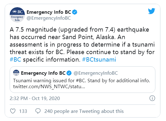 突发新闻!刚刚,美东时间下午5点左右,即本文截稿的数十分钟前,美国地质调查局称,阿拉斯加海岸附近再次暴发7.5级强震! 这场地震不仅惊醒了当地美国兄弟,也让隔壁的加拿大朋友坐立难安。目前,南阿拉斯加和阿拉斯加半岛皆已发布了海啸预警。 美国地质调查局警告称:“如果你住在沿海地区,请立即向内陆地势较高的地方迁移。” 初步资料显示,这次地震是一次走滑型地震,震源深度估计为40公里。距离震中最近的社区是阿拉斯加州的沙普特,一个居民不足1,000人的小镇,位于西北方向约92公里处。阿拉斯加地震中心说,南海岸的许多社区都有震感,包括沙普点、乔普林克、尤纳拉斯加和基奈半岛。 据报道,11分钟后又发生了里氏5.2级的余震,震中大致位于同一地区。 熟知地理的朋友一定知道,加拿大其实是被“两个美国”夹在中间的,地震多发地带阿拉斯加刚好就在加拿大bc省的头顶,因此每一场地震海啸爆发,加拿大居民都显得格外紧张。 美东时间下午5点15分,即地震刚爆发不久,美加地质局官员就表示,当前正在评估BC省的居民是否有危险。 阿拉斯加最近一次爆发强震就是在两年前:2018年初,阿拉斯加出现7.9级超强地震,事件一度引发各界对于“the big one(超级强震)”的担忧。 难道那场传言分分钟震碎加拿大西海岸的9.0级大地震,真的要来了吗? 官方曾给出简短答案:是的。 毕竟自今年2020年以来,全球气候就不断表现出异常征兆: 19年底至20年初,BC省温哥华岛海岸附近就暴发9次不同程度地震,大温白石海滩更曾惊现大量银色小鱼,现场情形触目惊心。 白石海滩上惊现大量的银色小鱼 种种现象似乎都提醒人们注意气候变化,警惕“the big one(超级强震)”的到来。 历史记载很久很久以前……大约是1700年1月26日的晚上9:00左右,北美大陆西海岸发生过9.0级强震。彼时,北加州、华盛顿州、加拿大卑诗省皆处于该地震范围内。据悉,这场地震曾引发海啸,十几米高的巨浪直接将西海岸所有居民以及住宅卷入海底。 此外,卑诗省原住民部落也一直流传着关于这场地震的传说,简单概括就是Pachena Bay的一切都不复存在,独留下一位公主将这片土地传承了下来。 传言归传言,但1700年的强震真实发生过,科学家们相信那场地震的破坏力与2004年印度洋海啸、2011年日本9级地震很相似。 科学家们认为这样的地震大约每400-600年会发生一次,而最近已经有研究表明断层到了活跃期,距离再次出现强震不会太久。 要知道,印度洋海啸当时不幸导致至少25万人丧生,日本2011年的地震也导致1.5万人丧生。如果类似强度的天灾现在发生在卑诗省,后果将不堪设想。 我们一直听闻的9.0级超级强震,据说可掀起20米巨浪,横跨整个太平洋海岸。而SFU地震学教授John Clague博士也指出,目前想预测强震的具体时间还很困难,但从历史资料来看,过去1万年间共发生了约20次超级强震。 资料显示,这个9.0级的强震将发生在卡斯卡迪亚俯冲带(Cascadia Subduction Zone),长度从温哥华岛至北加州共1000公里。 这条断层是让德富卡板块(Juan de Fuca plate)和北美板块(North American plate)的边缘。让德富卡板块本应移至北美板块下方,但已经在同一位置停滞了3个世纪。 研究团队注意到,让德富卡板块被厚厚的沉积带所覆盖,与许多俯冲板块一样,沉积带会在两个板块之间形成一个楔形结构,而这个楔形结构直接关系着地壳内压力的释放。 不幸的是, 卡斯卡迪亚俯冲带上方的这个楔块无意中阻止了压力的释放,导致巨大的能量被积压在板块之间。当大断层滑落时,就会造成大型逆冲区地震(“megathrust” earthquake)。 上一次大型逆冲区地震就发生在1700年。结合已有调查与取出的楔形沉积物岩心样本,研究人员发现楔形结构质地异常紧致,远超预期。这意味着大量的海水几乎无法通过俯冲板块的接合位点,起到“润滑”作用。 如此一来,干燥的俯冲面摩擦阻力大,最终会瞬间释放巨大破坏性能量。因此,卡斯卡迪亚俯冲带的北部地区不仅面临着强震威胁,海啸的袭击也会让这里变得更脆弱。下一次此类强震会何时到来呢?专家认为有12%的可能性将在未来50年内发生,但一定会在未来200年内发生。一旦发生,预计死亡人数将超过10,000人,受伤人数将超过26,000人。 届时温哥华岛西岸及美国太平洋沿岸的几个州影响将最为严重,而地震所引起的海啸将同样影响到温哥华和维多利亚。温哥华岛西岸居民将提前20分钟得到海啸预警,海浪高度将达到15-20米。维多利亚居民预计可以提前1小时得到预警,温哥华居民的时间更加充裕一些。北北了解到,由于很长时间以来加拿大都是山好水好的祥和之地,如果真有强震袭来,加拿大极有可能全无招架之力,因此当局极有必要防患于未然。早在2014年,加拿大西安大略大学就制作出了一张表格,住在BC省大温地区的居民可以通过邮编查看自家地震的风险。卑诗西南部有13个邮政编码被划为“极高”等级,其中包括位于列治文、三角洲、维多利亚等城市。 看完以上内容,不知加拿大朋友有何感受?超级大地震究竟离我们有多远?这一切地异常理现象是否为我们敲响了警钟? 希望警钟敲响前,我们已做好了准备。