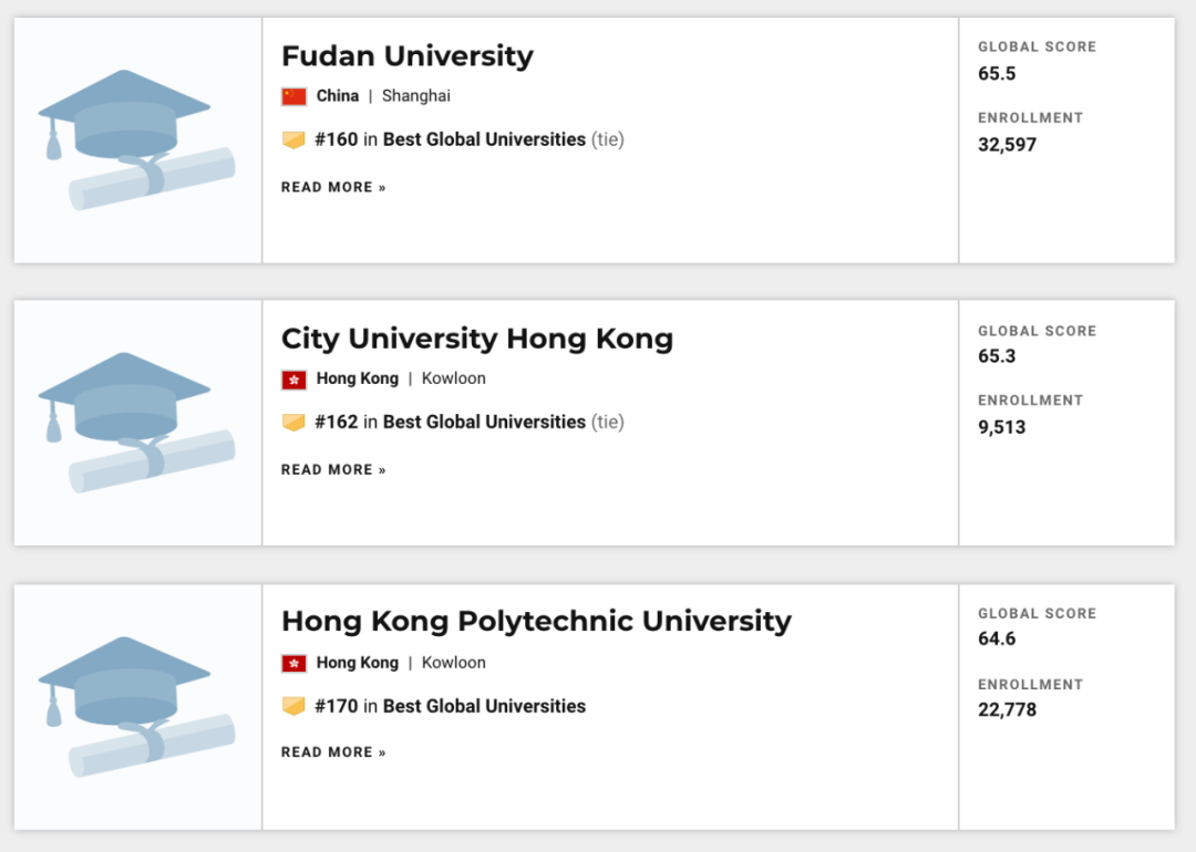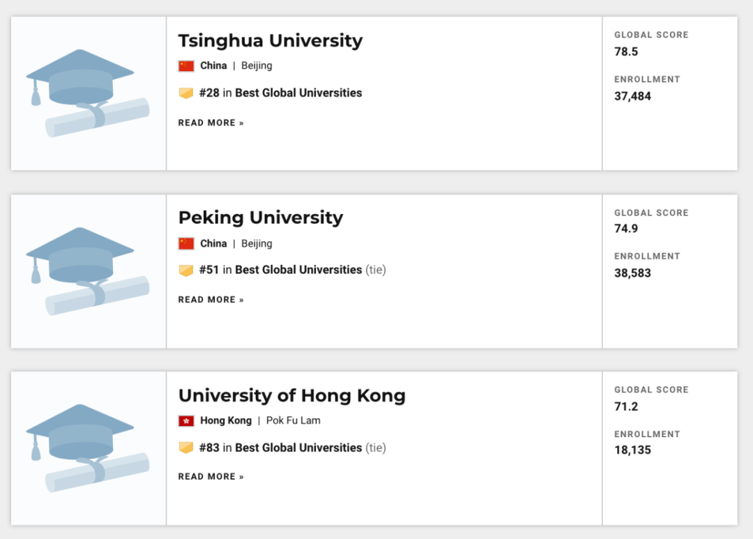 2021 US News 世界大学中国排行榜Top50