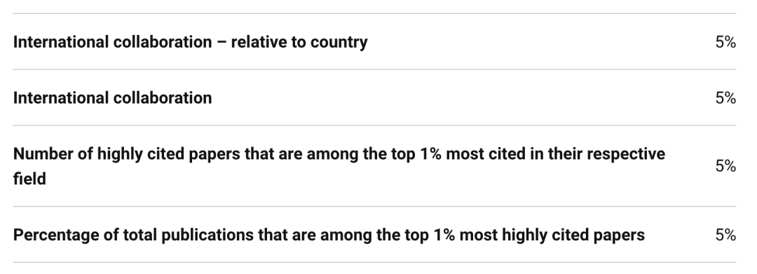 出版物占“出版物被引用最多前1%”的比率 5%