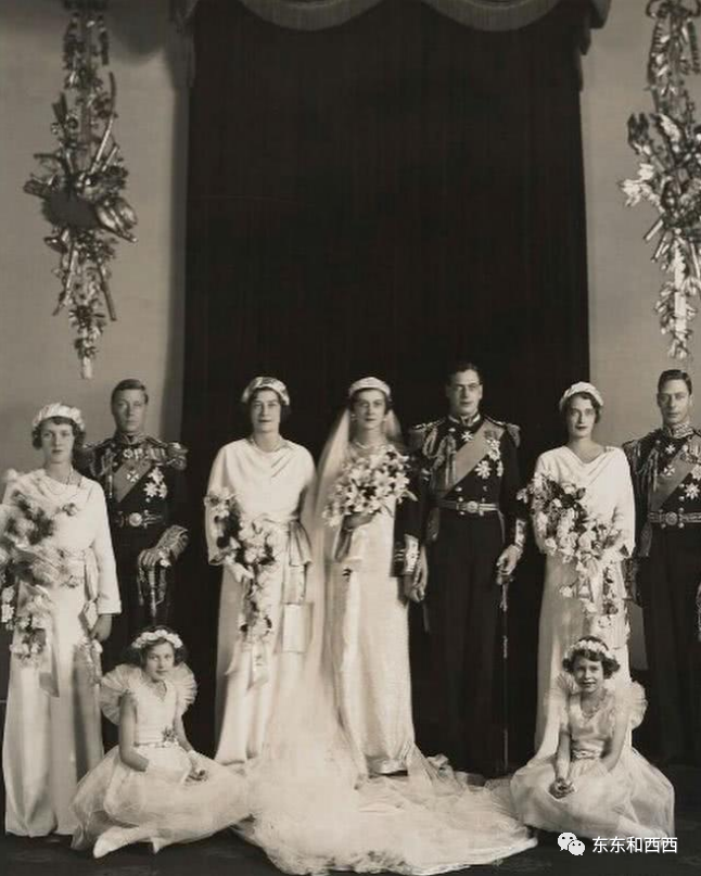 伴娘统统是来自希腊、荷兰和俄罗斯的公主,花童就是侄女:未来英国女王伊丽莎白二世,当时8岁。这才叫顶配↓↓