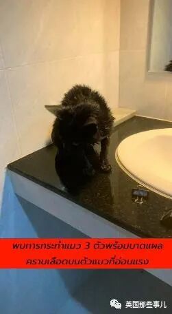 从现场拍摄的视频可以看到,有只遍体鳞伤的黑猫静静地待在洗手台上,