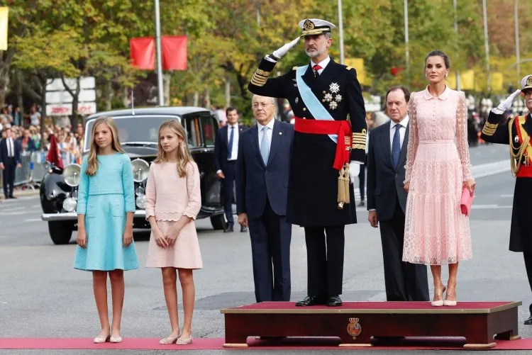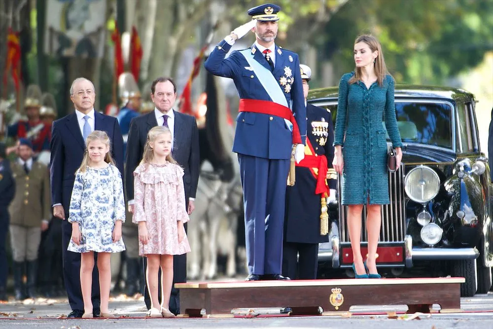 2015年西班牙国庆阅兵时,她只不过站得太累了,想动一下腿,立刻因为这个细微的小动作被王后眼神警告,人马上又正襟危坐起来。