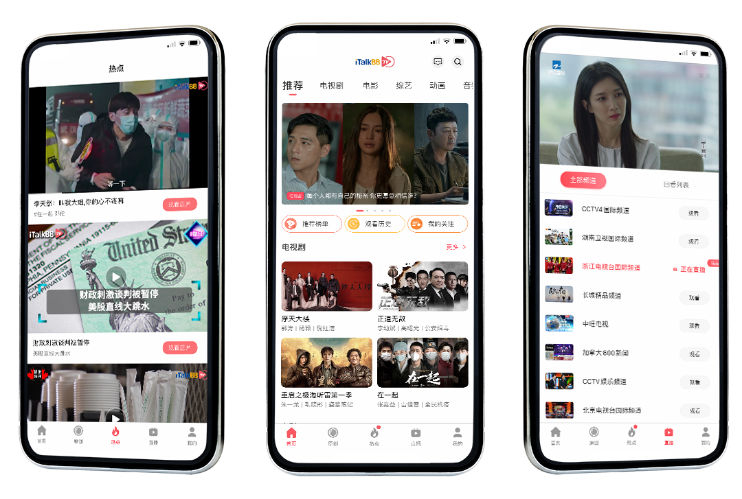 最最重要的,iTalkBB TV在北美中文APP中,唯一可通过Airplay/Chromecast投屏电视屏幕观看——妥妥疫情宅家的“移动剧院”啊!