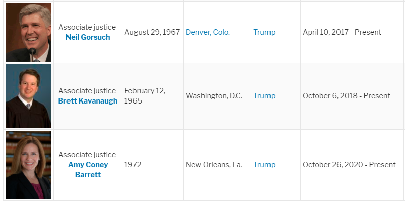 原本川普单提名了个Barrett好像倒也没啥,关键问题是,这已经是川普任期内提名的第3位最高院大法官,目前共和党总统已经提名了6名大法官了!
