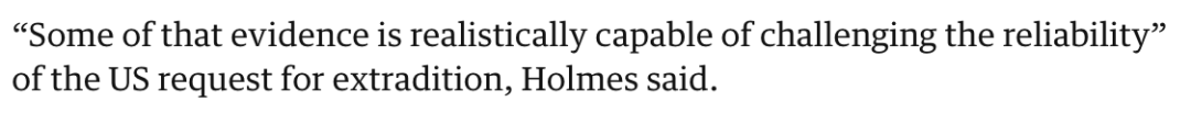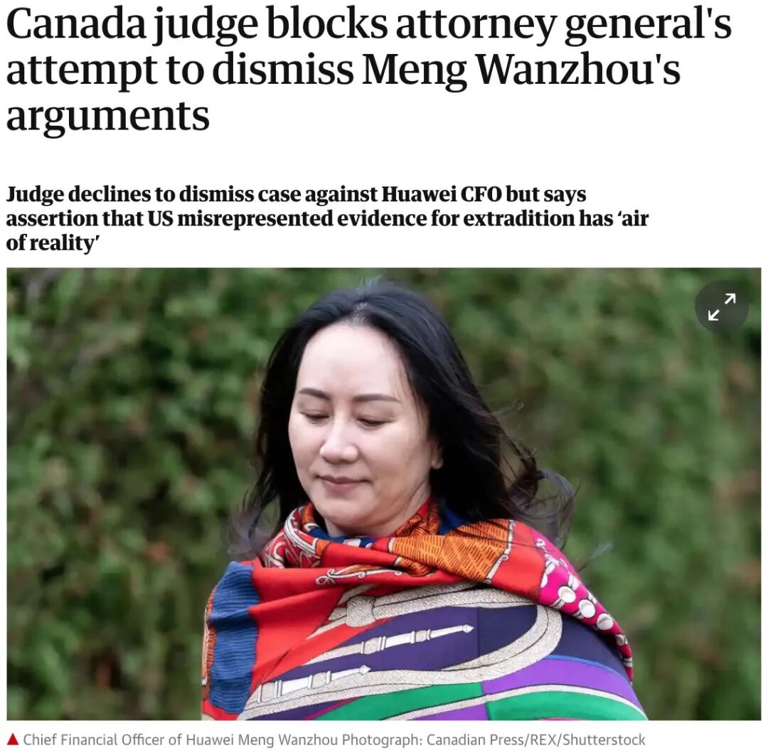 (原文:Although Holmes agreed that Meng’s arguments were not strong enough to warrant immediate dismissal of the case, she said they “may be capable of doing so when considered together with allegations from the first or second branches”, referring to other allegations of abuses of process Meng has put forward.)
