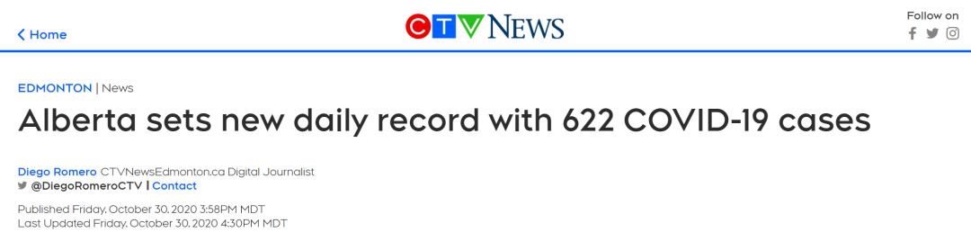 无独有偶,毗邻曼省的阿尔伯塔省10月30日也刷新了迄今为止的单日最高新增病例数。在过去的24小时,阿尔伯塔省新增感染病例622例,目前活跃病例数达5172人,也是自疫情以来的最高水平。
