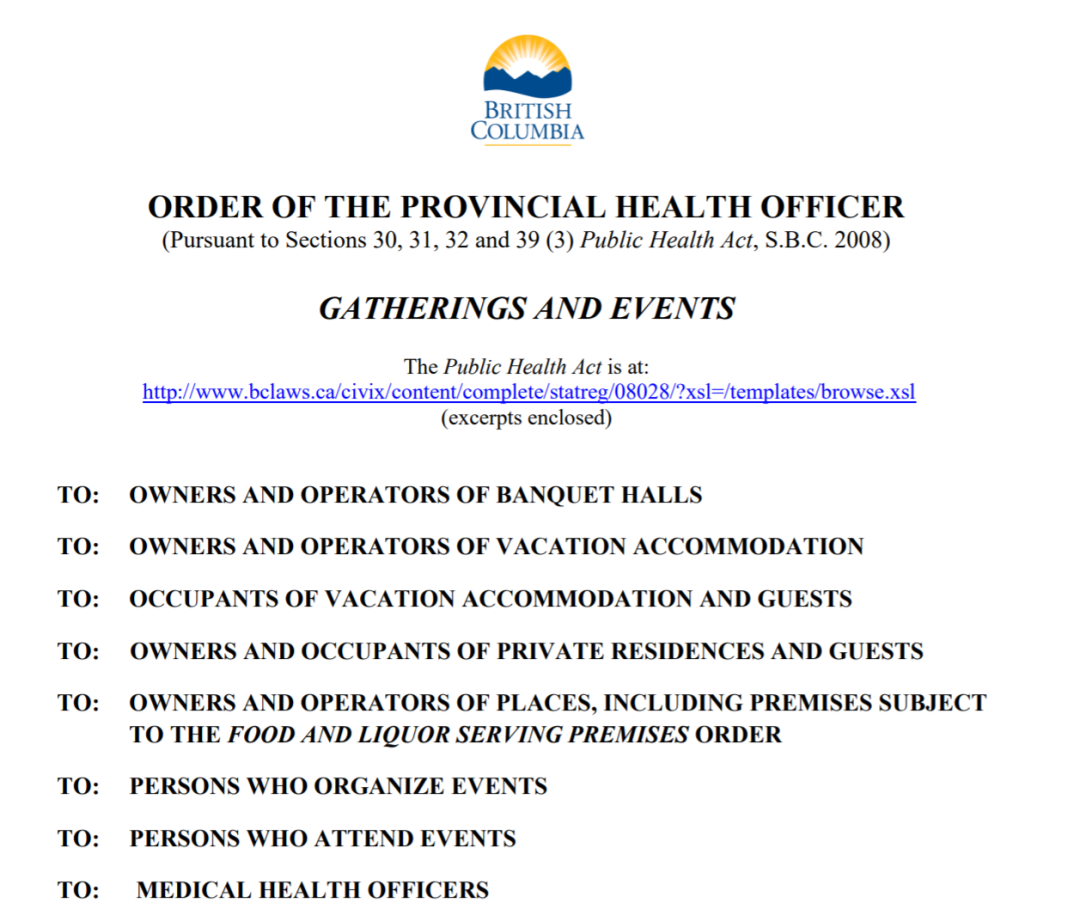 (Bonnie Henry博士签署的命令,放权给地区卫生官员 图自BC省政府官网)