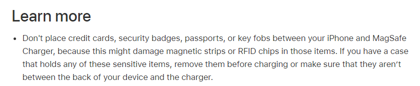 这本来是一个方便的功能,但是在苹果最新的一份文档中显示,MagSafe 可能会让你的一些卡片消磁。