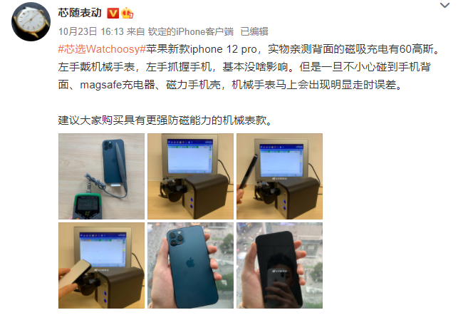 对了,如果你手腕上戴的不是 Apple Watch 而是传统的机械表的话,那么 iPhone 12 有可能会影响到手表的准确性。。。