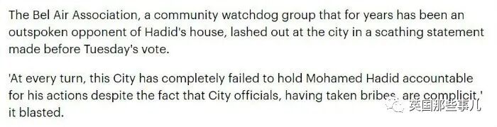 今年8月,社区监督组织The Bel Air Association发表声明,再次为Mohamed豪宅一事发声,向洛杉矶相关市政部门发难。