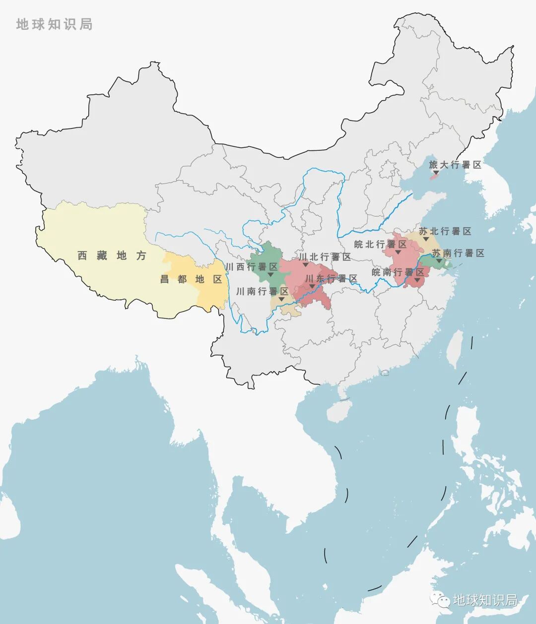 行署区集中在川渝、苏皖、旅大