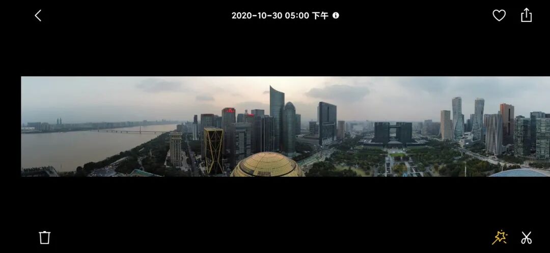 这个时候,只需让无人机飞到视角比较好的位置,接着在屏幕或者遥控器上按下快门,大片就有了。