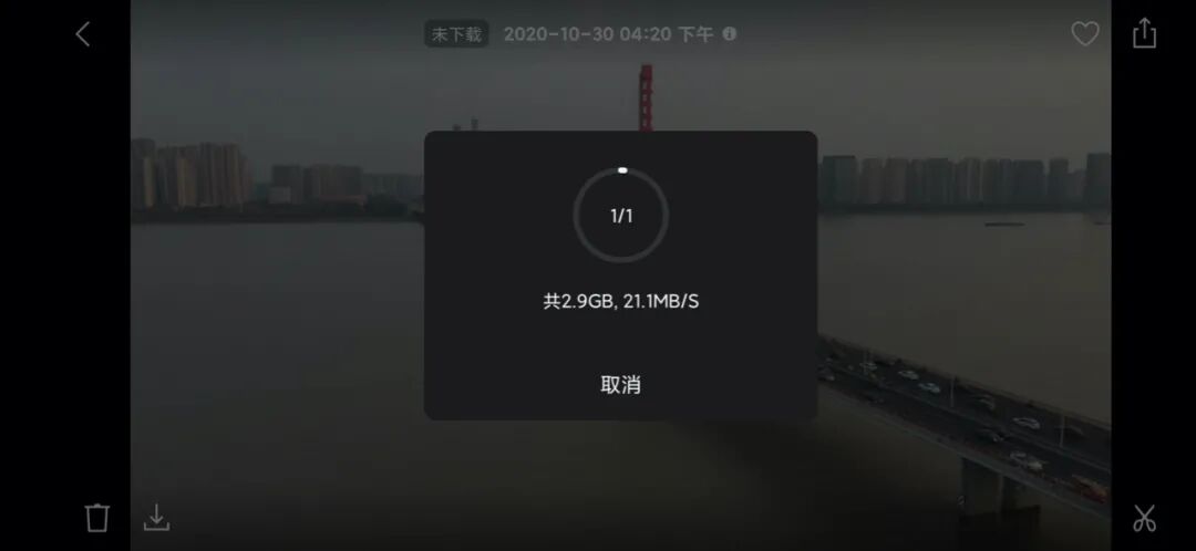 Mini 2 上还有一个功能特别实用,那就是快传模式下,无人机支持通过 WiFi 和蓝牙直接连接手机,然后可以高速下载素材( 最高速度可达 20MB/s )。
