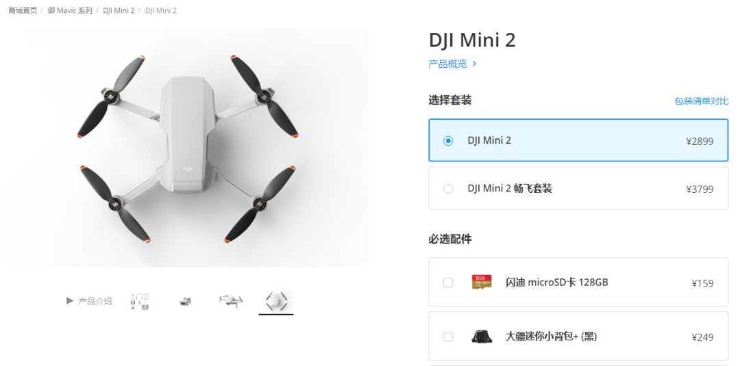 轻巧便携的机身、简易稳定的操控,再加上标准版 2899 的价格( 畅飞套装版 3799 ),DJI Mini 2 毫无疑问也是新手最值得入手的一台无人机。