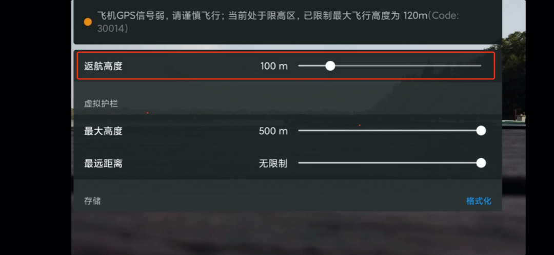 所以避免无人机炸机的要诀,就是在 App 里把返航高度设置的高一点,然后起飞后将机子原地上升到比周围建筑或者树木都高再做其它动作就行。