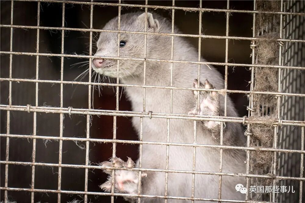 原本这些养殖的水貂生而在笼中,最终的命运是被剥皮取走皮毛,