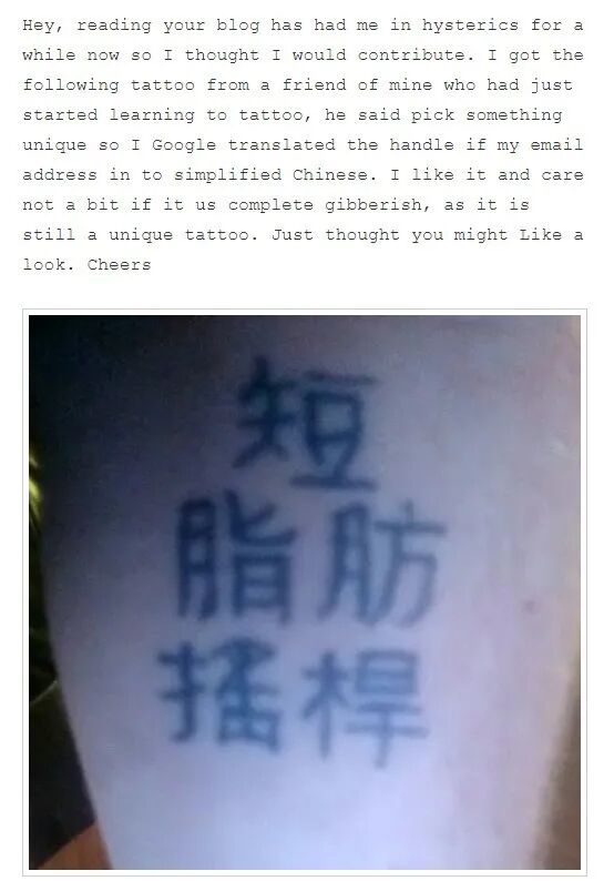 毕竟很多外国人纹汉字都是用翻译软件进行中文直译,然后纹上去的。