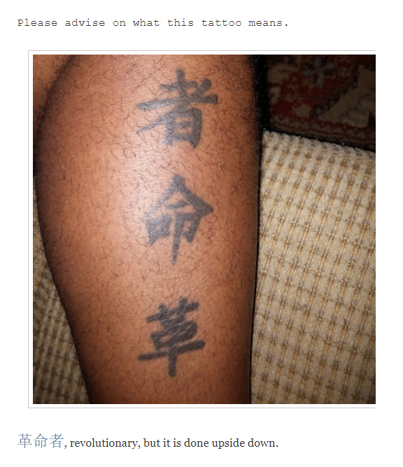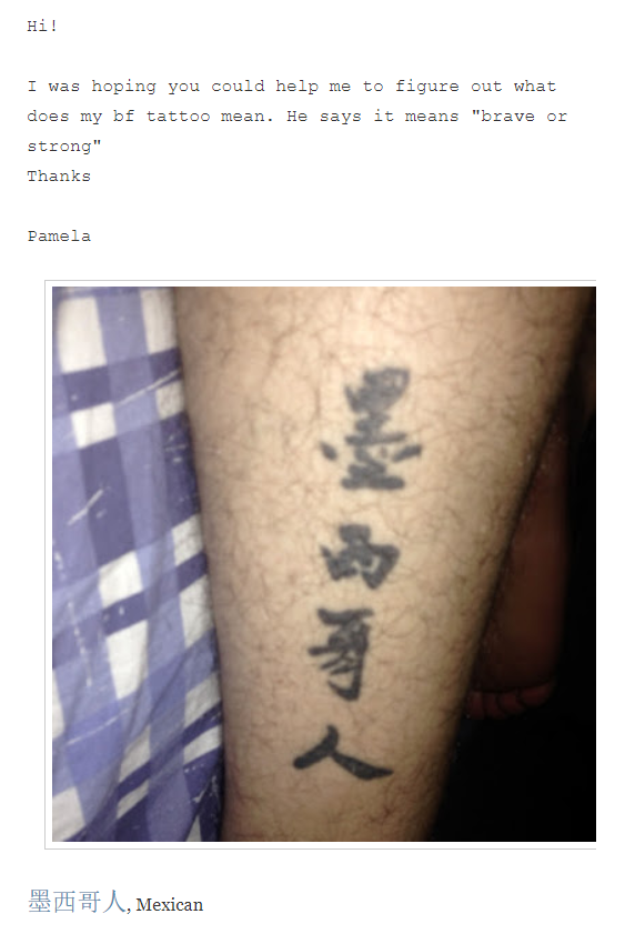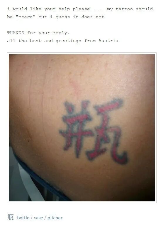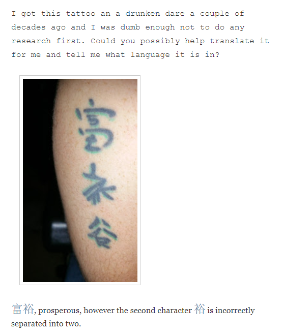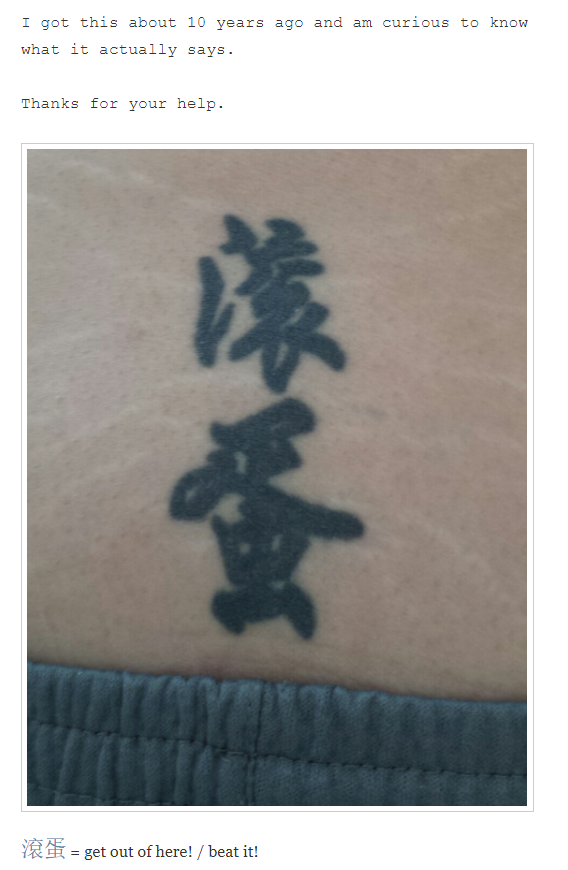 对于不懂中文的外国友人来说,在自己身上纹汉字纹身这事带有不少“风险”,