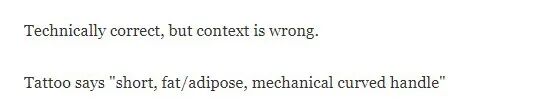 分别翻译过来就是——短、肥胖/脂肪,以及机械弯曲手柄的意思…”