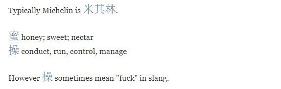 但这和我们翻译出来的‘Michelin’汉字根本一点儿也不像,所以就想来问问你这是啥意思?”