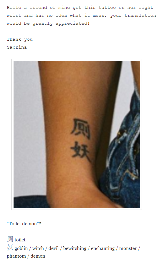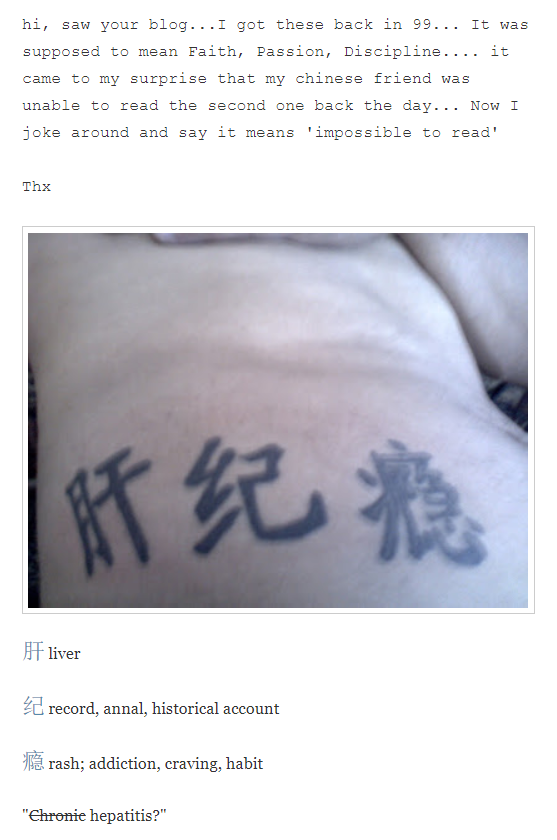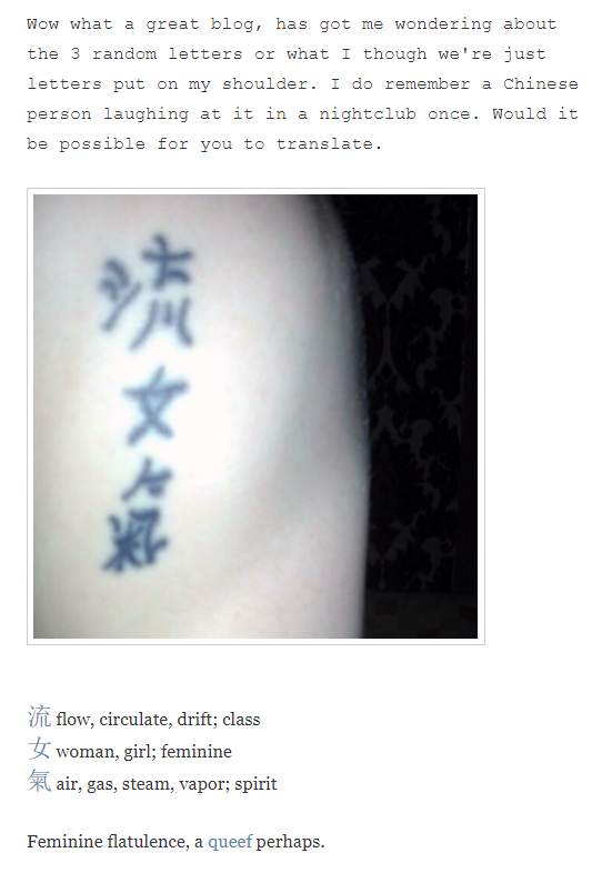 有个叫做“Hanzi Smatter”的博客,热心的博主就专门解答外国网友关于身上汉字纹身的意思