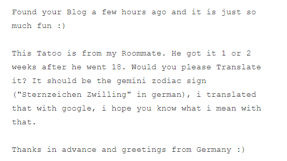 答:“这纹的是双胞胎,而不是双子座啊…”