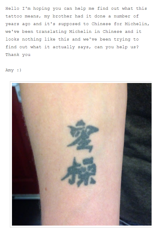 网友:“我哥在几年前纹了这个字样,他原本想纹的是‘Michelin’的中文,