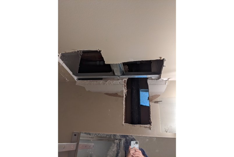 据Eddie Wong透露,“漏水的源头在301户的天花板和401户的地板之间。” 当他们修理管道时,物业经理告诉Eddie,墙他们是不管的。“他们让我去找我的保险公司解决问题。这听起来并不合理,因为物业应当负责维修公共财产。”