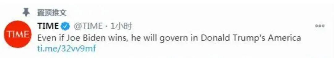 选举日后,《时代》杂志发布了最新一期封面,一个被撕裂的、印着美国国旗的口罩,并在推文中写下这样一句话:“就算乔·拜登赢了,他将管理的也是唐纳德·特朗普的美国。”