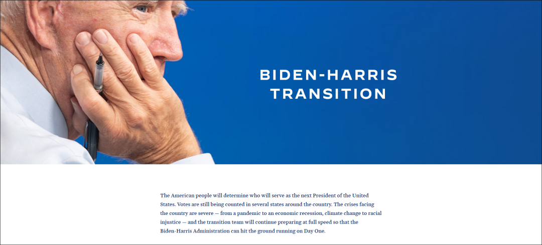 11月4日,就在赢下264张选举人票后,拜登阵营的“政府过渡网站”悄然上线,此举被解读为拜登对赢下选战充满信心,同时再度引发了人们对拜登如何组建执政班底的猜测。