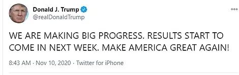 得到最高法支持的特朗普,10日一大早就像打了鸡血一样连发三条大写加粗的推特: