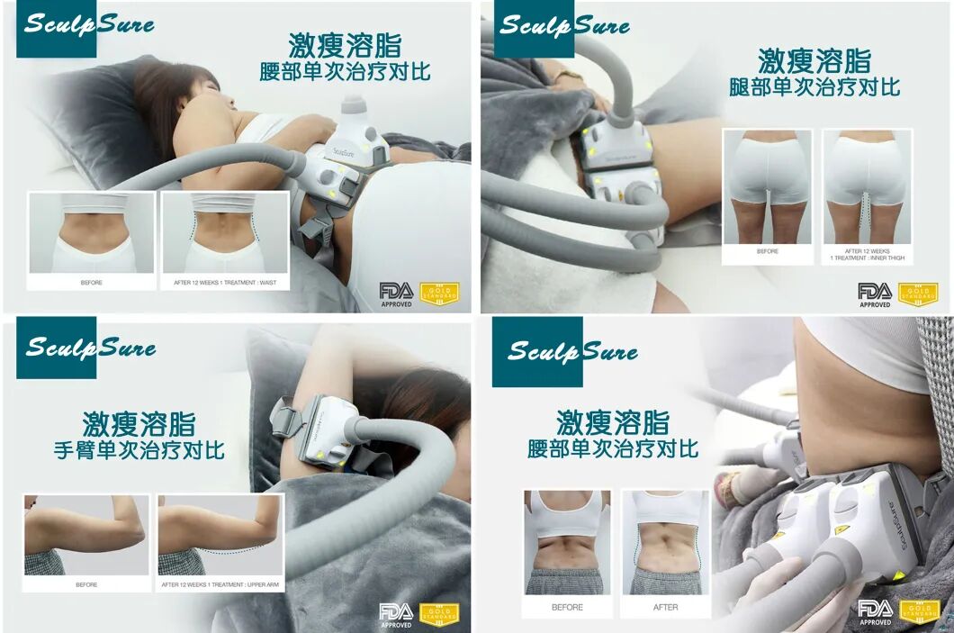 机器溶脂背后的原理是物理减肥。与化学减肥和药物减肥相比,物理减肥最大的优势就是安全性和永久性。通过美国FDA认证的SculpSure溶脂仪器,使用1060nm波长的激光,精准针对脂肪细胞进行分解破坏。破坏后的脂肪细胞被自然代谢,使得身体的脂肪细胞数量从根本上减少,达到永久减肥、身体雕塑的效果。