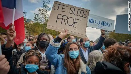 10月16日,法国一名中学老师在课上展示讽刺穆斯林先知的漫画,结果被伊斯兰极端分子当街斩首。