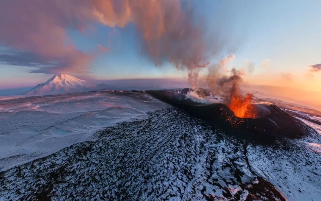 在此天堂与地狱在此惊人地交接,生死之间维持着巧妙平衡,火山创造出冰火兼容的土地。堪察加火山群的特点是火山密度高,喷发形式多样。