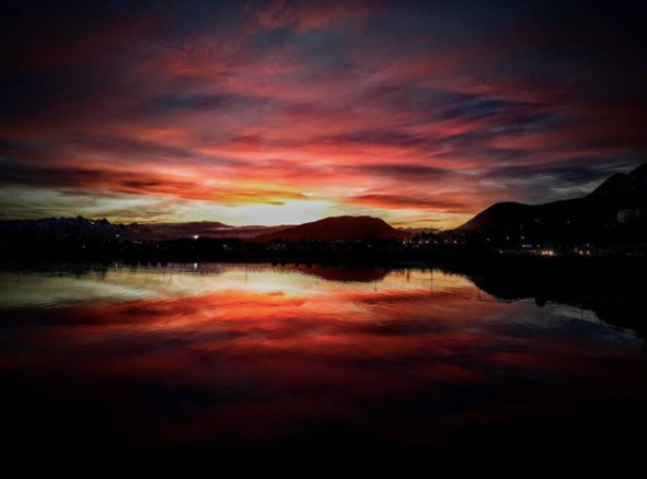 乌斯怀亚印第安语,是“观赏落日的海湾”之意,当日落黄昏时,登上山岗,眺望晚霞中的海湾,水天一色,云霞似锦,美不胜收。