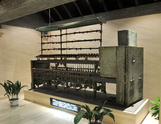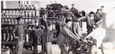 1912年4月,张謇创办南通纺织染传习所,次年定名为南通纺织专门学校,图为当时学生在工厂中学习操作机器