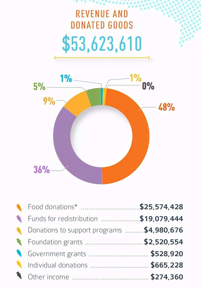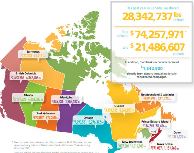 食物银行最大的捐赠者是大型的零售食品公司,在全加拿大范围内,大公司每年捐赠的食品达到2200万磅,而个人捐赠者只占1%。