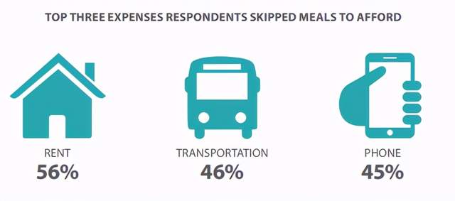 受访者表示,他们常常会挨饿,把为数不多的钱用于支付房租、交通和手机通信费。