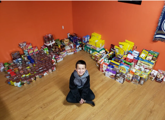 这个11岁的男孩名叫Nathan Leduc-Lavigne,他设定了一个目标,在自己的社区广泛收集食物,装满父母的两辆车,然后将其全部捐赠给Châteauguay食物银行。