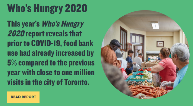 其实在疫情之前,与去年相比,食物银行的访问量已经增加了5%,多伦多的访问量接近100万,已经达到了2008-09年金融危机后的最高水平。