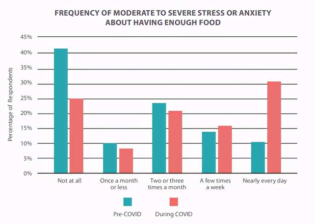 该报告还对访问食物银行的客户进行了调查,其中有85%的客户说,即使在进入食物银行后,他们也不总是有足够的食物可吃。