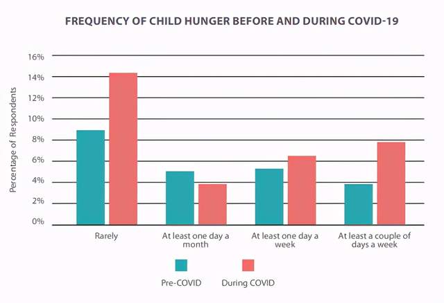 而令人心疼的是,调查发现,每周有几天吃不饱的儿童比疫情前的数量增加了一倍。