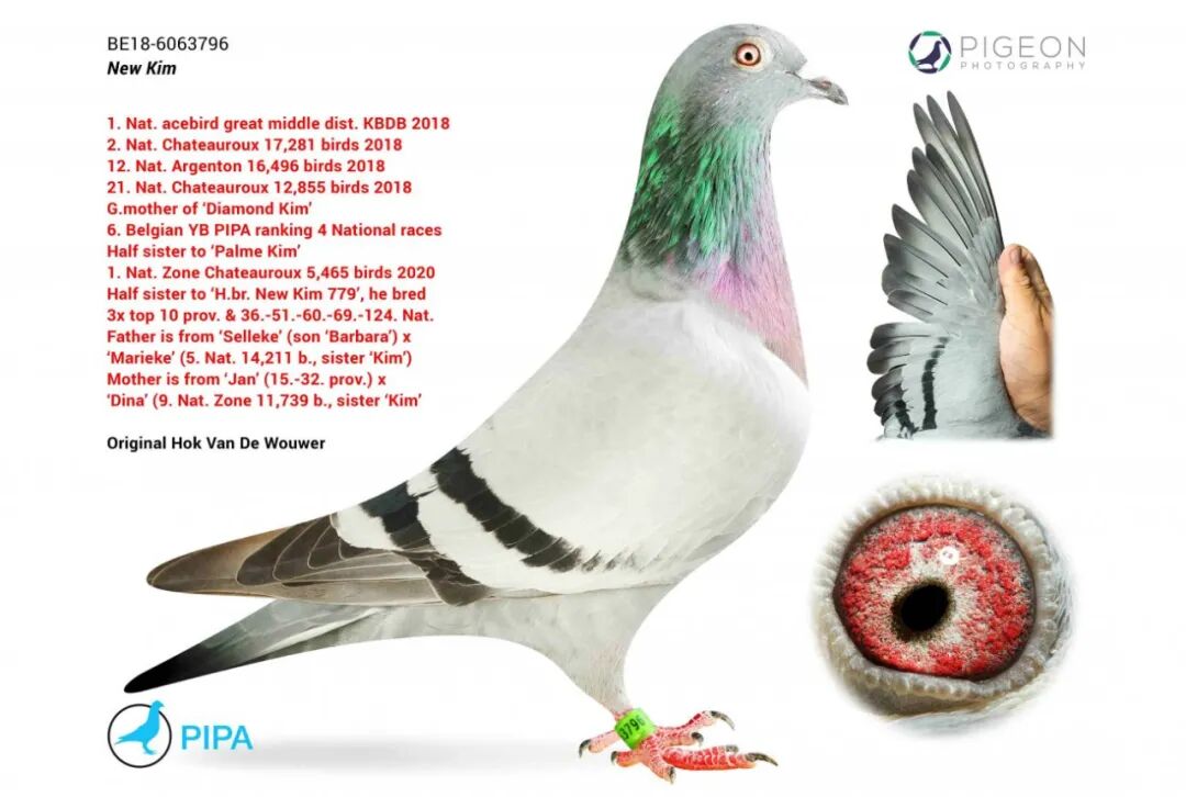 “新金”是一只雌性鸽子,曾于2018年在法国中距离赛鸽比赛中获冠军。