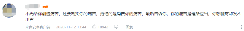 “不光给你创造痛苦,还要嘲笑你的痛苦。更绝的是消费你的痛苦,最后告诉你,你的痛苦是理所应当。你想喊疼却发不出声。”